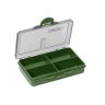 Небольшая карповая коробка Carp Pro для аксессуаров с четырьмя отсеками рассчитана на любителей карпфишинга. Эта компактная и удобная коробка для рыболовной «мелочевки» изготовлена из ударопрочного пластика, стойкого к ультрафиолету и к перепадам температур. Верхняя крышка выполнена из полупрозрачного пластика и позволяет, не открывая коробку, визуально определить место укладки нужного аксессуара или оценить их количество.